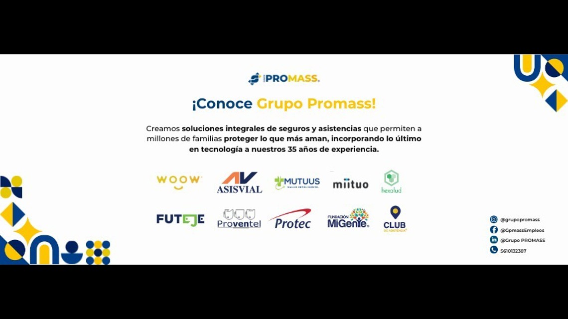 Grupo PROMASS es una empresa consolidada con más de 30 años de experiencia como un integrador líder en productos de seguros masivos, servicios de asistencia, salud, telecomunicaciones y tecnología en el mercado mexicano.